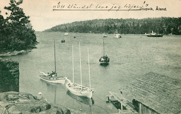 Geta har sedan lång tid tillbaka varit en turistkommun. Getabergen med sin grottor och utsikten över Djupviken var upplevelser som erbjöds turisterna redan för hundra år sedan. På detta vykort från 1900-talets början ses ett livligt båtliv i Djupviken. Ett par ångbåtar har ankrat upp och turisterna håller på att skeppas i land med mindre båtar. Vykortet tillhör journalisten Mårten Sundberg (med rötter i Geta sedan urminnes tider).