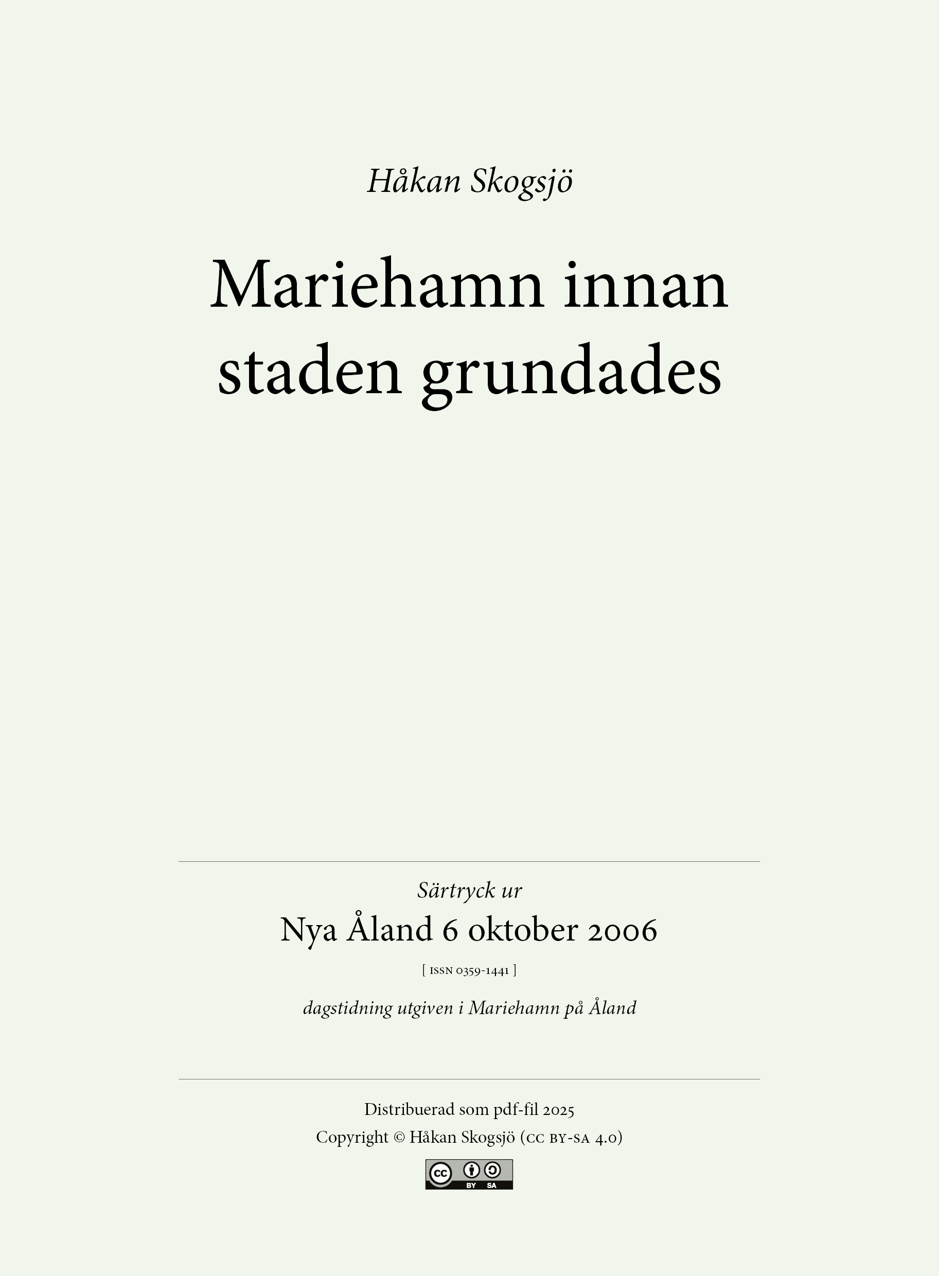 På Byaberget låg fyra bondgårdar och nedanför bredde åkrar och ängar ut sig mot norr och väster. Det var den lilla byn Övernäs på 1850-talet. Så anlände Finlands generalguvernör till byn och efter det blev ingenting sig likt. Bönderna tvingades bort och en ny stad anlades: Mariehamn. Tulltjänstemän och handelsmän flyttade in i de gamla bondgårdarna i väntan på att egna, mer stadsmässiga hus kunde uppföras vid de nya gatorna nedanför berget.