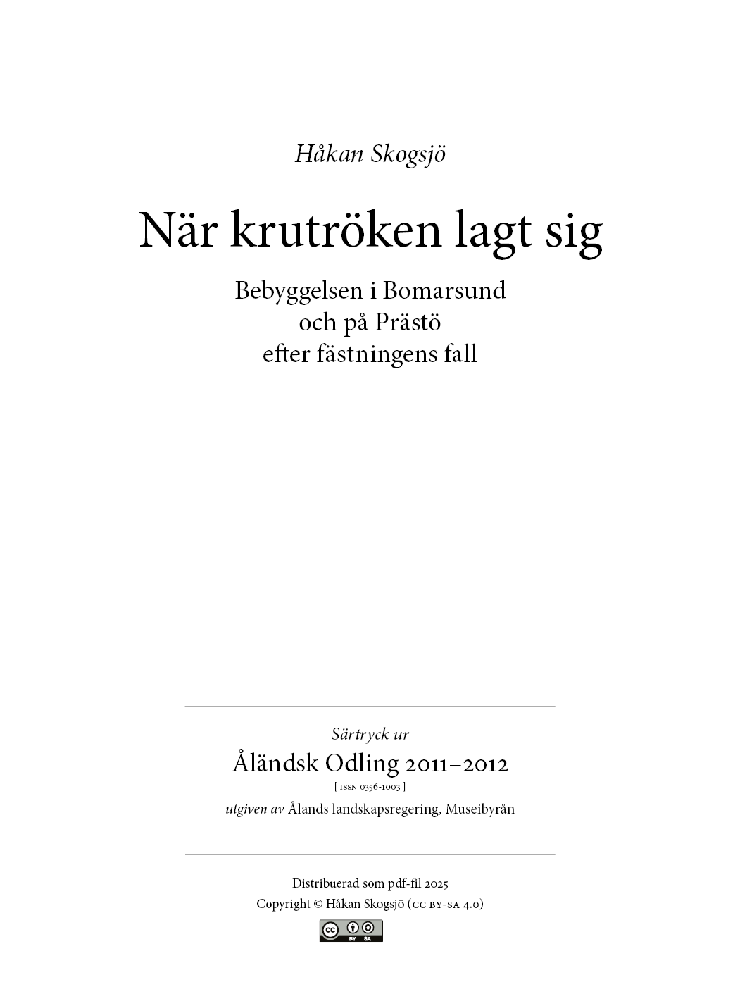 Bomarsund på Åland är mest känt för den ryska fästning som började byggas omkring 1830 och sprängdes till ruiner 1854 under Krimkriget. Hela det stora fästningsromådet som före kriget hade myllrat av människor blev öde och tomt. Men som efter en skogsbrand tog livet snart fart igen. I artikeln kartläggs den nya bebyggelse som växte fram.