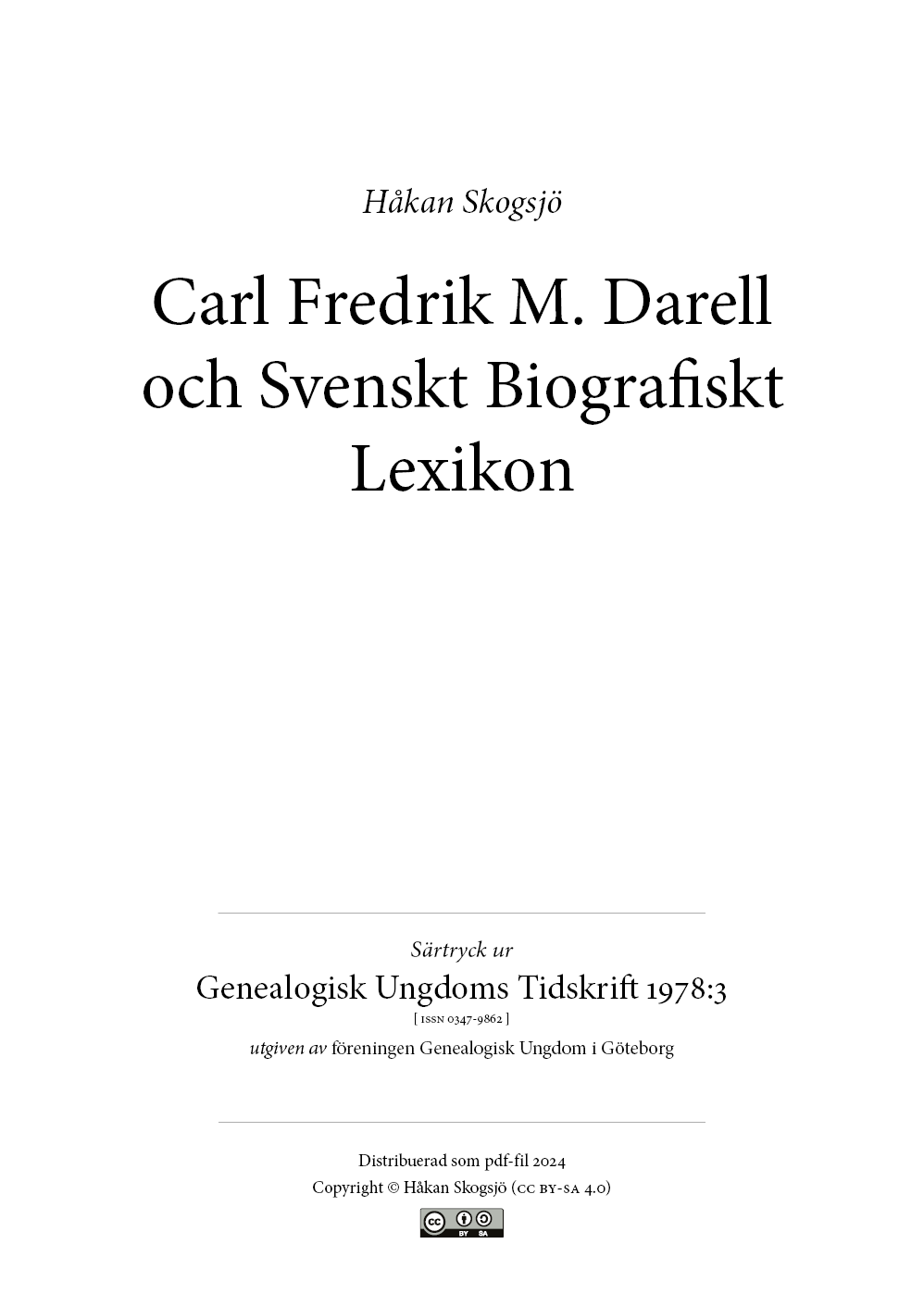 Carl Fredrik M. Darell var en fattig, lovande konstnärselev som använde sin talang i tvivelaktiga syften. Han häktades 1839 för falskmynting, men lyckades rymma och försvann spårlöst. Han hette Carl Fredrik, men skrev sig ofta Carl Fredrik M. Vad betydde den extra initialen? Hade den något att göra med hans ursprung?