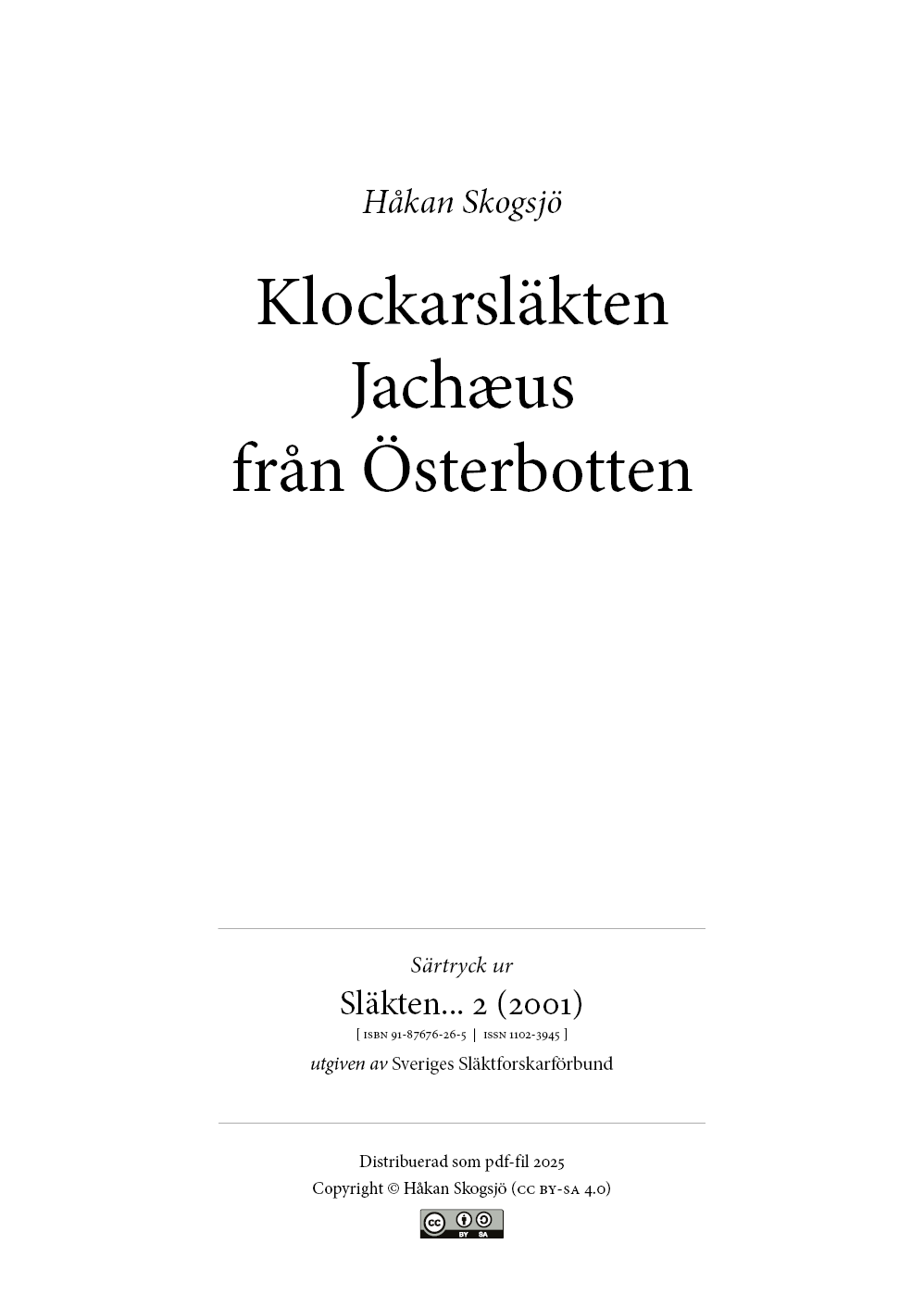 Släkten härstammar från byn Jakkula i Laihela socken i Österbotten, några mil sydost om Vasa. Stamfadern Anders Jachæus, född 1717, studerade i Vasa skola, hamnade på okända vägar i Västergötland och antogs 1742 till klockare i Fågelås socken strax söder om Hjo. Numera är släkten utdöd. Den sista namnbäraren var Anna Jachaeus, som hade mjölkaffär och hembageri i Stockholm. Hon dog 1951.