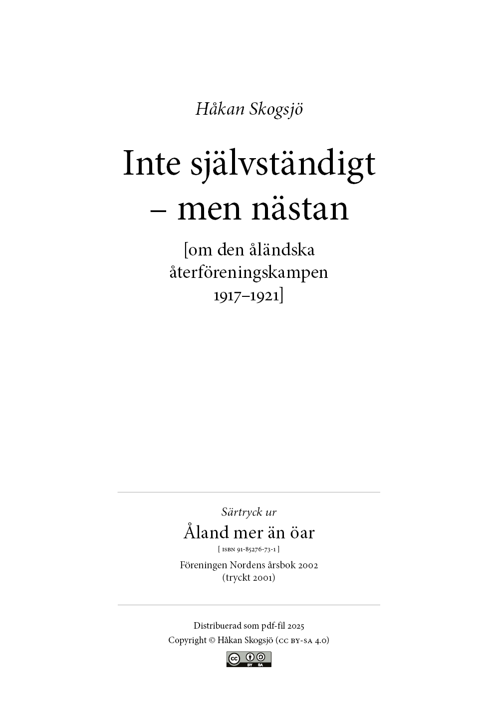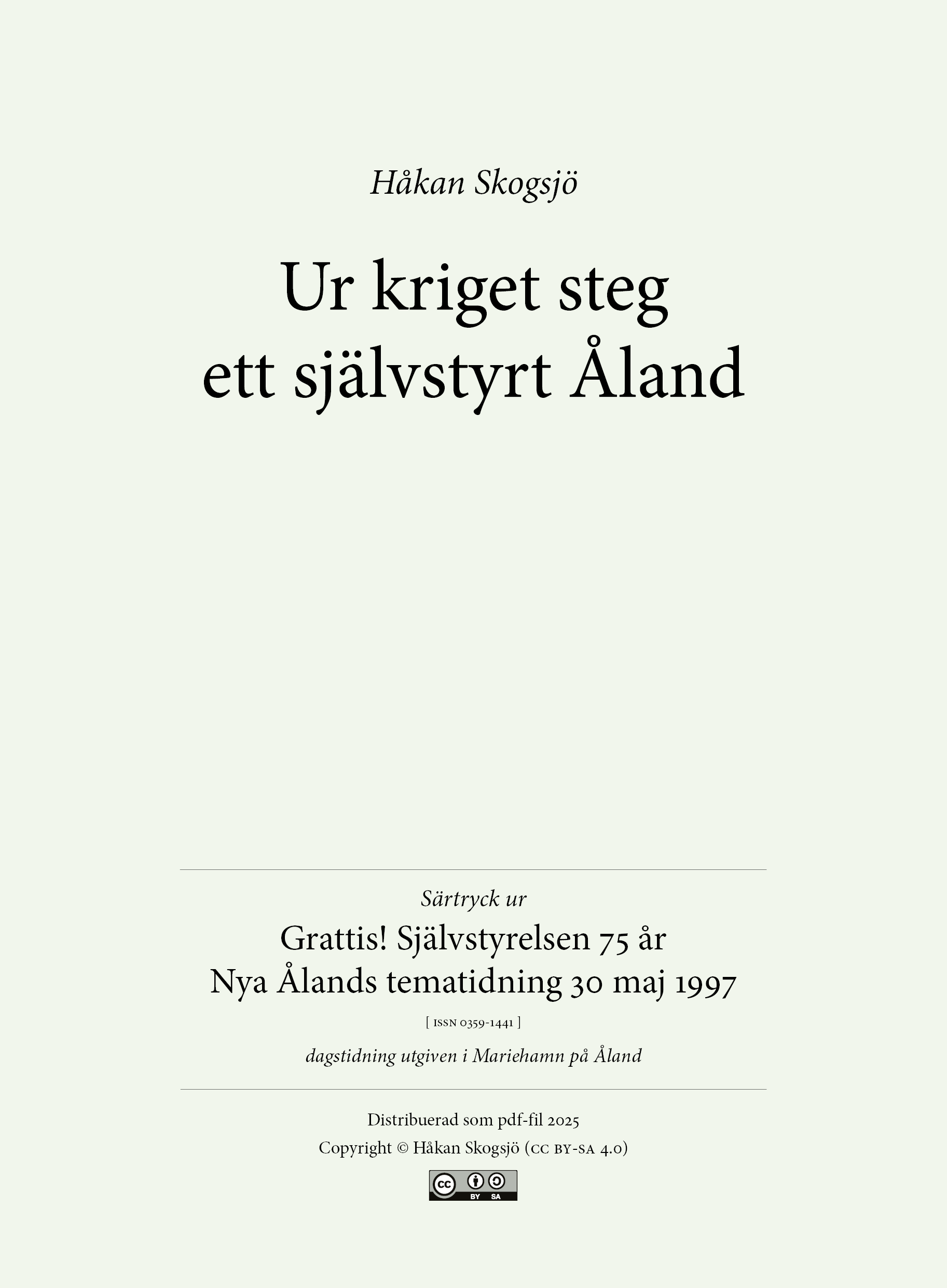 Första världskriget 1914–1918 skapade ett nytt Europa. Tsarryssland rämnade, likaså det gamla habsburgska kejsardömet Österrike-Ungern. Ur askan och ruinerna steg en rad nya, självständiga stater, bland dem Finland och de baltiska republikerna. På Åland växte tanken på en återförening med det gamla moderlandet Sverige, såväl hos bönder och studenter som hos många i samhällets ledande skikt. Snart började kampen.