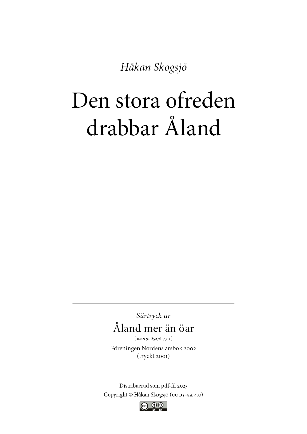 Det stora nordiska kriget, Karl XII:s krig i början av 1700-talet, blev den värsta prövningen någonsin för ålänningarna. Sensommaren 1714 flydde så gott som hela befolkningen, flertalet till svenska fastlandet, och kunde inte återvände förrän efter krigsslutet i början av 1720-talet. Då hade det öde landskapet under tiden hunnit vara platsen för tämligen bisarra fredsförhandlingar mellan Ryssland och Sverige.