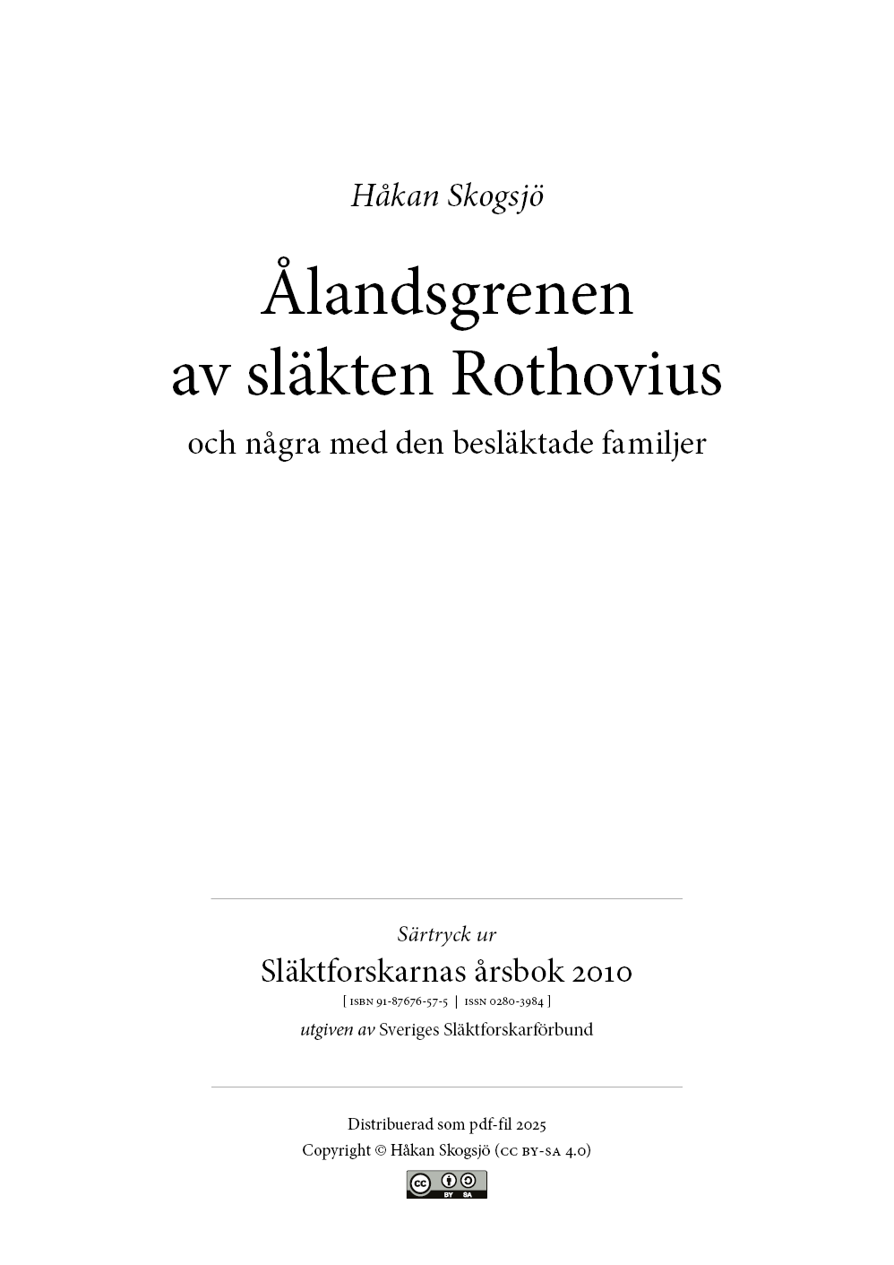 Smålänningen Gudmund Rothovius hade efter många år i Åbo säkert vant sig vid stadslivet, när han 1672 blev kyrkoherde i Föglö i den åländska skärgården. Där var det båt som gällde – i ur och skur. I artikeln reds hans efterkommande ut. De bär efternamn som Lindell, Mansnerus, Manser, Frestare, Mallén, och Lundeqvist.