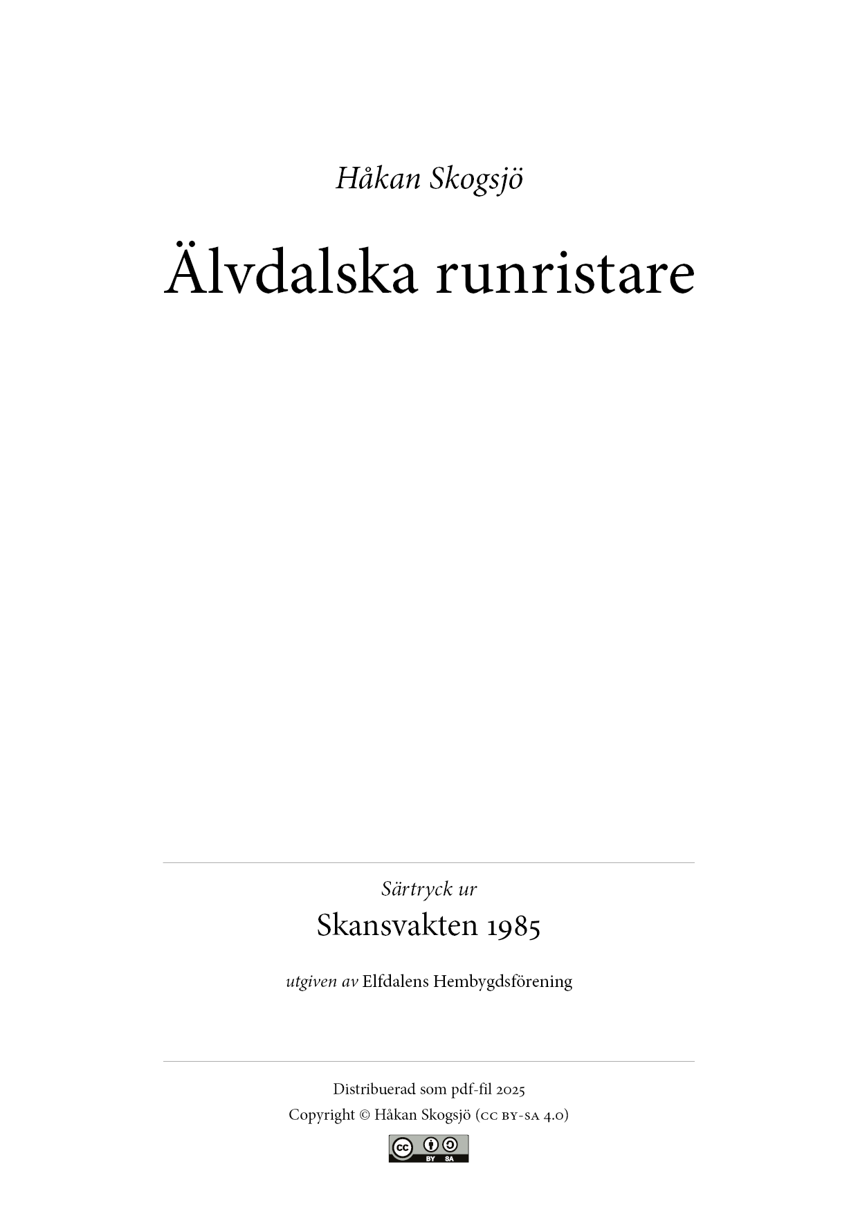 Runor förknippas mest med vikingatid och tidig medeltid. Men runskriften levde vidare mycket längre än så, särskilt i övre Dalarna och alldeles speciellt i Älvdalens socken uppe i Dalarnas nordvästra hörn. Där använde allmogen ända in på 1700- och 1800-talen runor, exempelvis för märkning av föremål. I lyckosamma fall kan dessa sentida runristare identifieras i kyrkböckerna.