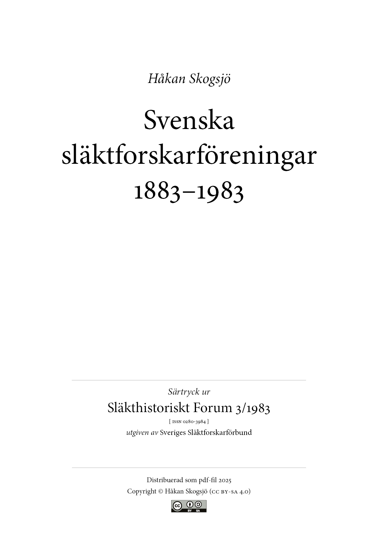 Genealogiska föreningen fyllde femtio år 1983. Den bildades på Eden Hotel i Stockholm den 27 november 1933. Förmodligen anade ingen av de närvarande - däribland initiativtagaren Lennart Zielfelt som skulle bli föreningens primus motor under 25 år - vilken betydelse för svensk släktforskning händelsen skulle få.