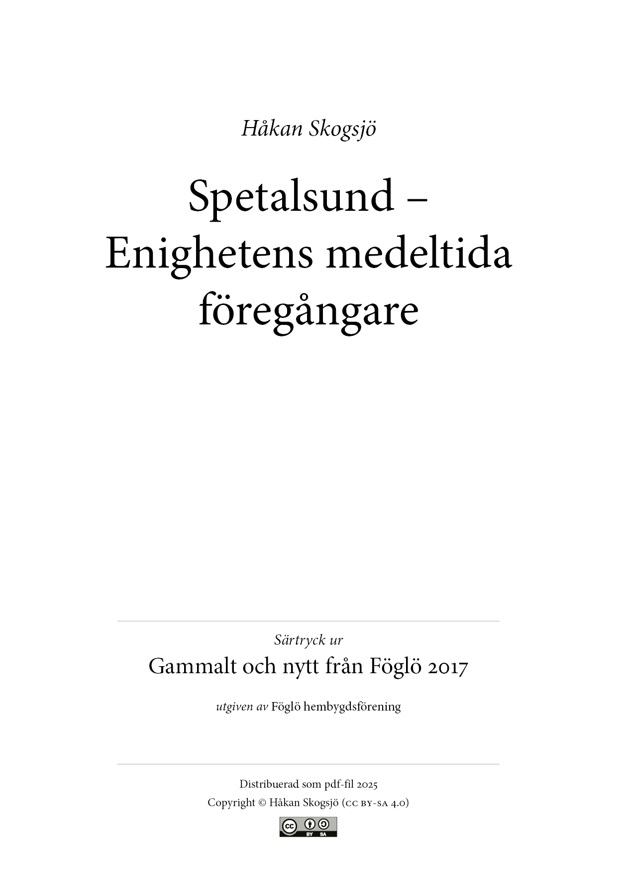 Namnet Spetalsund har mer eller mindre försvunnit och ersatts av det obegripliga Spettarhålet. Det är synd, för Spetalsund är urgammalt och visar att det redan på medeltiden fanns en härbärgeringsrörelse i Degerby på Åland, sannolikt ungefär där gästhemmet Enigheten ligger i dag. I 800 år har sjöfarare erbjudits mat och husrum på samma plats. En imponerande traditon!