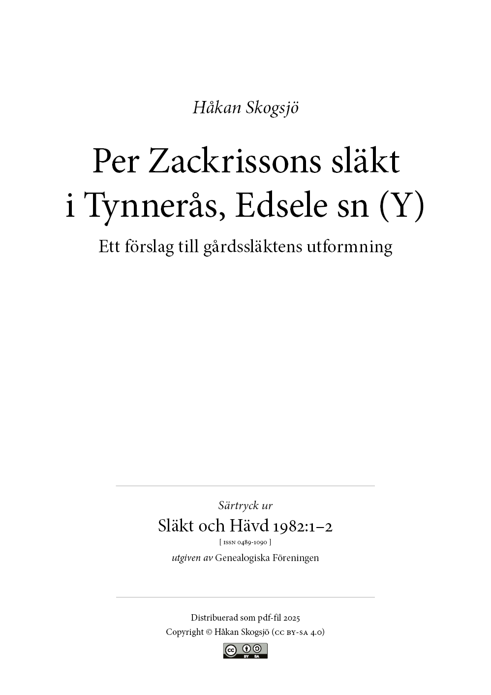 En allmogegenealogi som utgår från Per Zackrisson, död omkring år 1700, bonde i byn Tynnerås, Edsele socken i Ångermanland. Släkten följer sedan hans efterkommande som bott kvar i byn och blir därmed ett exempel på en så kallad gårdssläkt, ett alternativt släktbegrepp. Istället för att som i agnatiska släkter låta släkten definieras av manliga efterkommande är det istället byn eller gården som avgränsar gårdssläkten.